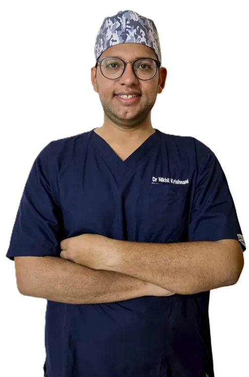 Dr. Nikhil Krishnani brings together advanced surgical expertise and a patient-centered approach. With specialized training from leading institutions, you're in safe hands.